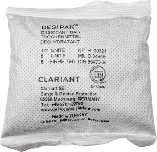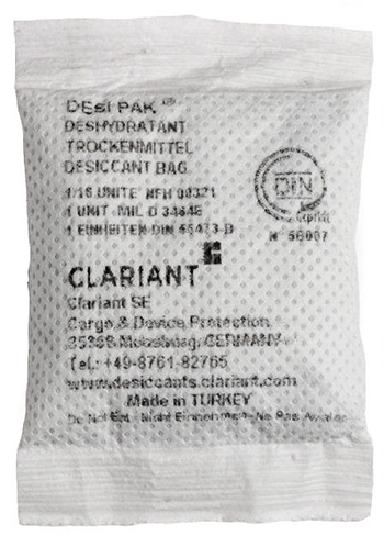 Im Karton mit 105 Trockenmittelbeutel DESI-PAK (Unterverpackt in sieben versiegelten PE-Beutel zu je 15 Stk.)