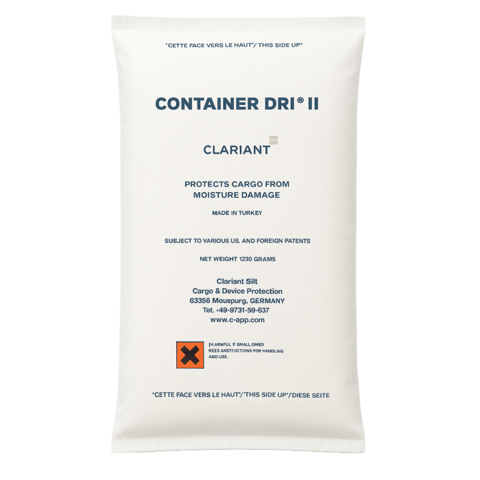 Die Luft enthält eine gewisse Menge Wasserdampf. Die Menge an gespeicherten Wasserdampf steigt mit zunehmender Temperatur der Luft. Wenn die natürliche Sättigung erreicht ist, endet dieser Prozess. Kommt es jetzt zu einem Temperaturabfall (was auf Transporten immer wieder die Regel ist), ensteht Kondenswasser, Schwitzwasser. Genau hier setzt die Wirkung von Container Dri® II ein. Es ist ein relativ günstiges Mittel zur Entfeuchtung der Luft. Die Container Dri® II Trockenbeutel enthalten Calciumchlorid und Attapulgit / Polygorskit (Gelbildner). Bei richtiger Dosierung wird die Bildung von Kondenswasser während des Transportes erfolgreich verhindert.